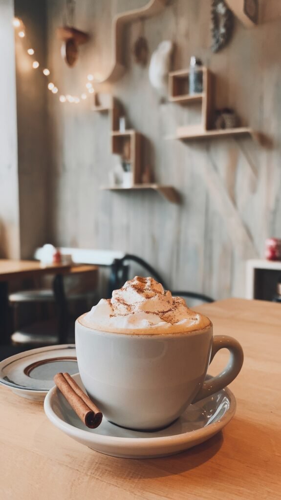 Warm up with a spiced chai latte topped with fluffy whipped cream. This drink combines rich tea flavors with a hint of cinnamon, making it perfect for cozy evenings. Enjoy it with a cinnamon stick for that extra touch of warmth!
