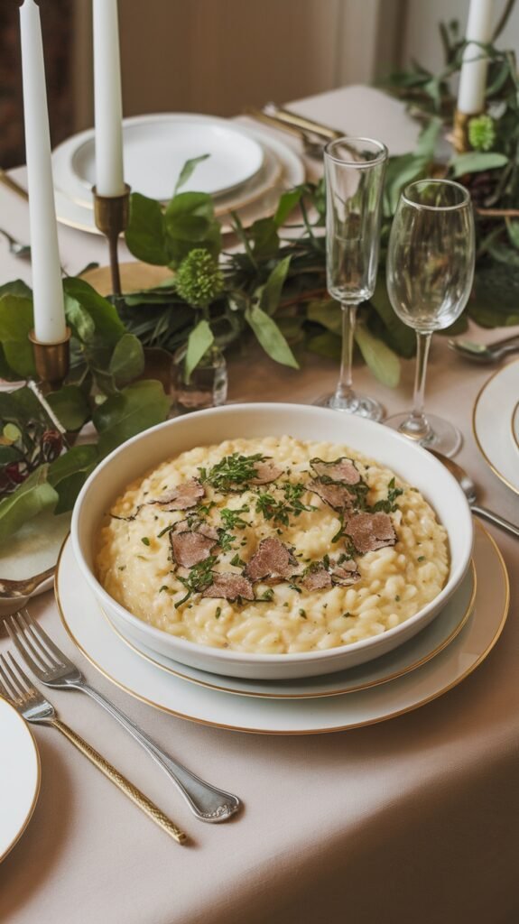 Serve this risotto in a beautiful bowl, garnished with fresh herbs or shaved truffles. Pair it with a glass of champagne for a truly festive touch. This dish not only looks stunning but also tastes amazing, making it a great choice for ringing in the New Year.