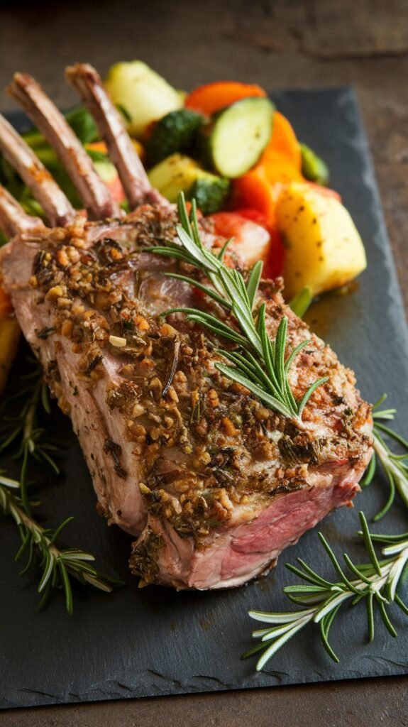 To make this dish, you’ll need a rack of lamb, fresh rosemary, thyme, garlic, and breadcrumbs. Start by seasoning the lamb with salt and pepper. Then, blend the herbs with garlic and breadcrumbs to form a crust. Spread this mixture over the lamb and roast it in the oven until it’s perfectly cooked.