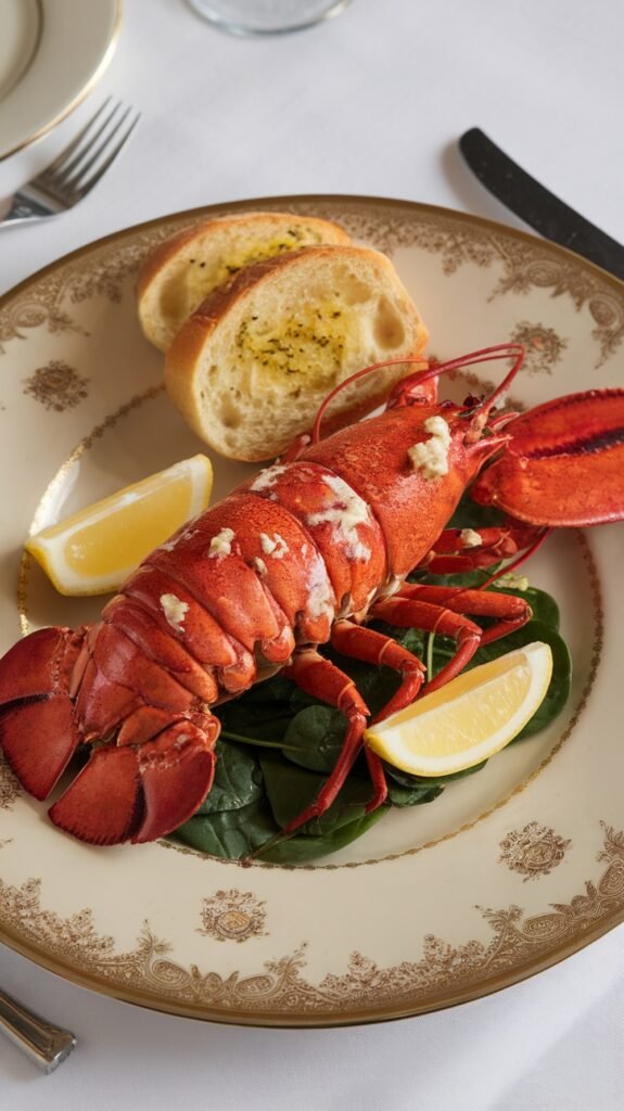 Lobster tail with garlic butter is a showstopper for your New Year’s Eve dinner. The vibrant red of the lobster contrasts beautifully with the fresh greens and bright lemon wedges on the plate. It’s a dish that feels fancy but is surprisingly easy to prepare.