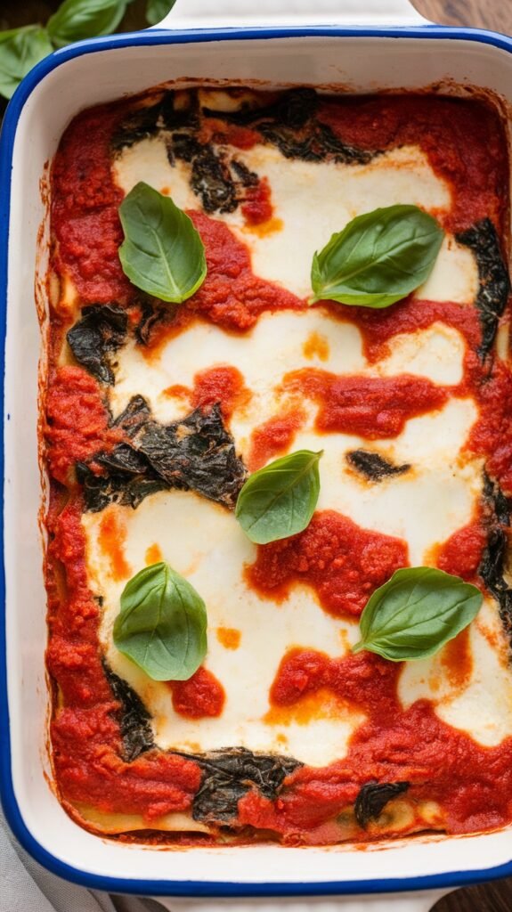 Vegetarian lasagna is a fantastic choice for New Year’s Eve. It’s hearty, comforting, and packed with flavor. This dish layers tender noodles with creamy ricotta, fresh spinach, and rich marinara sauce, making it a crowd-pleaser.