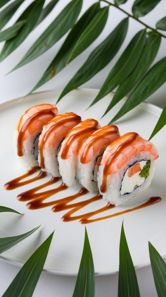 The Shrimp and Cream Cheese Roll is a delightful treat for sushi lovers. This roll combines fresh shrimp with creamy cheese, creating a perfect balance of flavors. Drizzled with a savory sauce, it’s a must-try for your next sushi night!