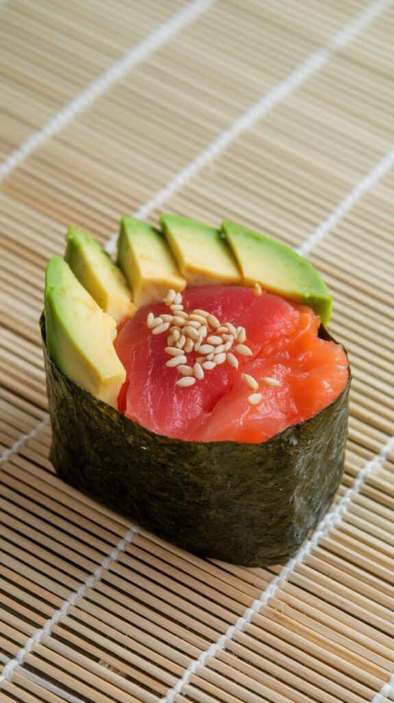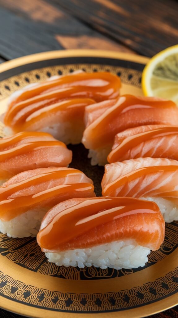 Mango and salmon nigiri is a delightful twist on traditional sushi. The sweet mango pairs perfectly with the rich salmon, creating a burst of flavor in every bite. It’s a fun and fresh option that’s sure to impress your friends at your next sushi night!