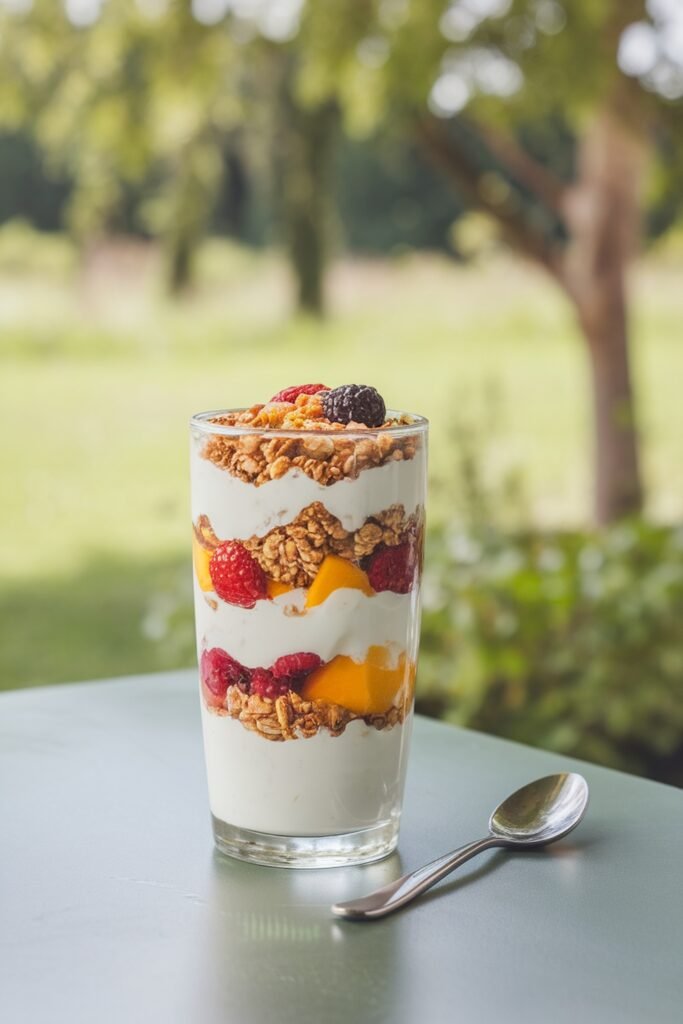 To make this parfait, gather your ingredients: Greek yogurt, your favorite granola, and a mix of fresh fruits like berries and mango. Begin by layering the yogurt at the bottom of a glass, followed by a layer of granola and a layer of fruits. Repeat until you reach the top. Finish it off with a sprinkle of granola and a few extra fruits for a pop of color.