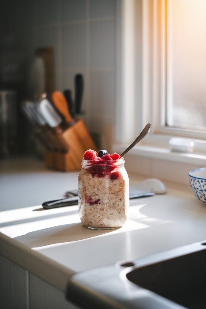 To make overnight oats, you’ll need rolled oats, your choice of milk, and some sweetener if you like. Simply mix these ingredients in a jar and let them sit in the fridge overnight. In the morning, top with fresh berries like strawberries, raspberries, or blueberries for a burst of flavor.